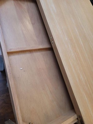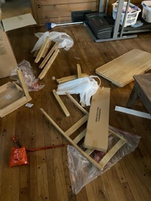 [This review was collected as part of a promotion.] This table set is very sturdy. The material is real and very heavy duty wood. The heigh is perfect for kid craft table. The folding feature is perfect to make it smaller or bigger as needed. The compartment under the table as a storage is genius! Perfect storage for any craft supply. The folding and sliding is smooth and very easy to operate.