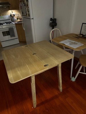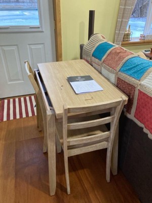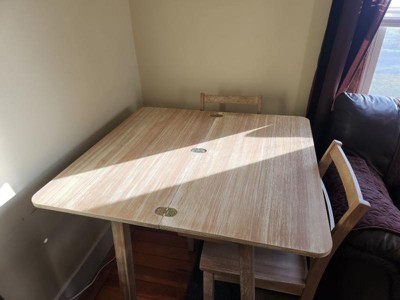 [This review was collected as part of a promotion.] The folding table top was more difficult to assemble than expected. The table once put together functions as expected . The drop leaf works effectively and does allow you to only use when needed. The chairs are a bit wobbly, but that is most likely my fault do to assembly. The table looks nice and is a nice addition to my small space.