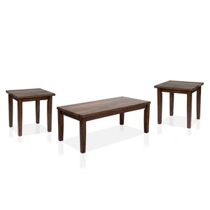 Give your living space a bold vibe with the addition of this 3-piece transitional coffee table set featuring a coffee table and two end tables. Each table is fashioned from paper, rubberwood, and MDF/birch veneer for a cool, inviting aesthetic. The set also includes wood grain details throughout, as well as solid block legs with stylish notches just under the tabletops