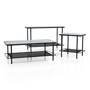 3pc Avalan Contemporary Marble Glass Coffee Table Set Black Coating/White - miBasics