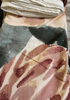 This Madison Park Blossom mordern, contemporary cotton duvet set features a large scale floral print design, a perfect mid-century update to any bedroom. Included are two matching shams. Colors found in this bed set include various shades of peach, orange, red, teal and green to create this gorgeous flower design. The cotton face and poly/cotton reverse will ensure a soft and comfortable sleeping experience.