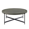 The simplistic design is both chic and functional. The mix of materials give this collection a rustic industrial feel that is sure bring character to your living space. Features solid wood tray tops that are fixed in place on a metal base. This round coffee table provides an ideal spot to place your books, magazines, beverage or snacks while entertaining in the living room. The end tables beautifully marry form and function and fit perfectly in a living room, family room, or office area without crowding a space or sacrificing style. Suggested weight capacity for coffee table is 75 lbs; suggested weight capacity for end table is 50 lbs.