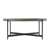 - Gray concrete-coating over wood table top with black powder-coated iron legs