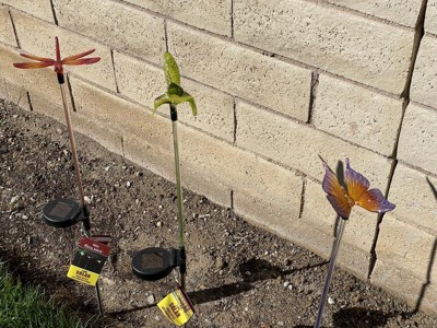 3pc Butterfly, Hummingbird, Dragonfly Solar Stakes: Alpine Corporation, Outdoor LED Decor