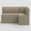 Enhance your dining nook with this 3-Piece Cora Dining Set from Threshold™. This set includes a chair, corner chair and a banquette to complete your dining setup. Supported by wooden frames, these furniture pieces are also upholstered to offer a comfortable seating experience. Plus, the solid color makes them easy to pair with any existing dining room decor.