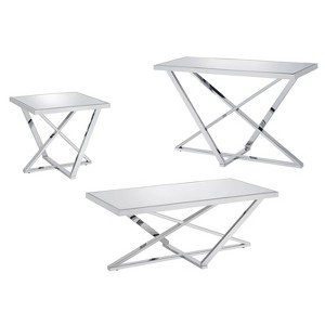 3pc Drubeck Mirrored Coffee Table Set Chrome - HOMES: Inside + Out