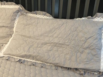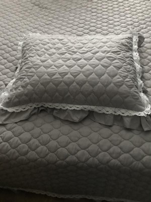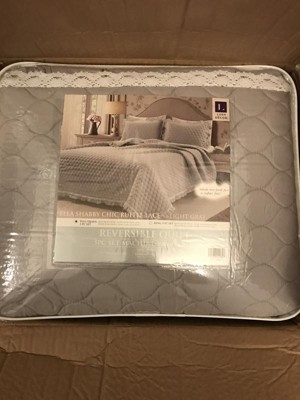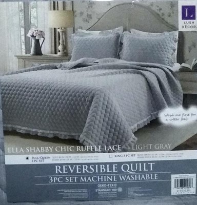 [This review was collected as part of a promotion.] Lush Decor Ella Shabby Chic Ruffle Lace 3 Piece Quilt Set is the perfect addition to any bedroom. The quilt is very soft and great to snuggle with. The design is simple and elegant with a nice feminine touch of beautiful lace trim around the quilt and pillow shams. The grey color is very neutral and works well with any bedroom decorum. Having the pillow shams included in the set is a great bonus as most bedding comes with just pillow cases. I absolutely love this bedding set and have received many compliments on this from family and friends.
