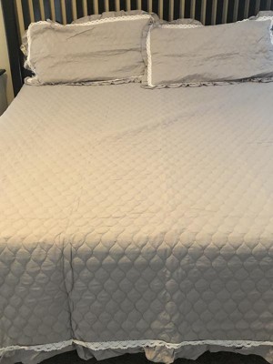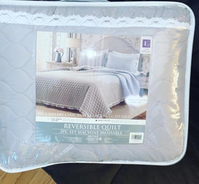 [This review was collected as part of a promotion.] The Lush Decór Ella Shabby Chic Ruffle Lace Quilt Set Light Gray looks soooooo fabulous and is so soft after washing it!!! It is just a beautiful shade of gray and the lace and ruffle detail make my bed look sooooo pretty! The details are so subtle but add such a polished finish to any bed! I love that it comes with the matching shams to complete the look and the quilt is reversible which is super awesome!! I can't say enough good things about the quality of construction and the overall look. It's gorgeous and I highly recommend this ruffle quilt set!!!