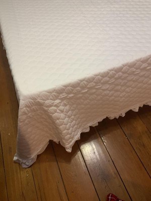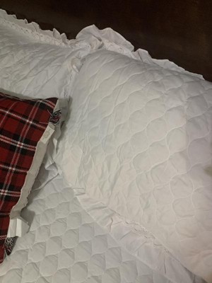 [This review was collected as part of a promotion.] This quilt is extremely soft. The decorative pillows are way softer than most. They feel like a regular sham. But still very pretty. I love the lacey feminine look it gives. You could add just about any color to make a splash. I love this color of white. I’m very happy with this product.