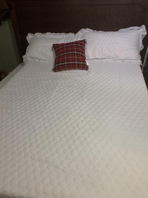 [This review was collected as part of a promotion.] I received this free for review and let me just say this is a beautiful quilt. I wasnt going to even try to get it but i did at the last minute. Im so glad i did. I almost didnt because its white. I have a 6 yr old and 9 month old....nothing stays white lol. But i am really glad i got this because it is just beautiful. I decided to use it in our spare room for when we have guests or my parents come to stay for a visit. Its so soft and luxurious. It seems very durable and of high quality. No out of place little strings or anything. Very clean. Very very nice. Thank you for letting me try this product out.