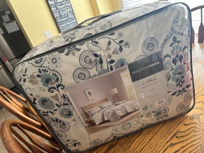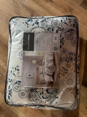 Featuring an all over floral botantical print, this Madison Park Elsie cotton comforter set exudes a modern farmhouse style for a casual update to any bedroom. Colors featured in this set include blue, navy, and taupe over a white background. The comforter is filled with hypoallergenic polyester filling that is treated to be dustproof, ensuring a restful and comfortable sleeping experience.
