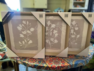 3pc Fair Florets Framed Glass Wall Art Set Beige - Madison Park: Modern Botanical Decor, MDF & Polyethylene