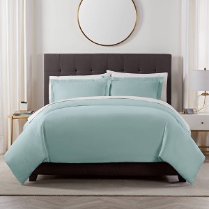 3pc Full/Queen CVC 500 Thread Count Solid Duvet & Sham Set Pale Green - Serta: Hypoallergenic, Button Closure