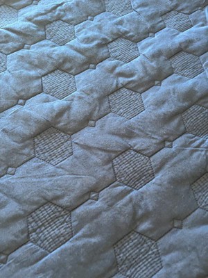 [This review was collected as part of a promotion.] The color in this quilt is even better in person! I was looking to add some texture to a layered bedding look in the primary bedroom, and I am loving the hexagon pattern.