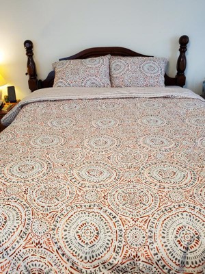 [This review was collected as part of a promotion.] This percale print comforter set from Heirlooms of India is absolutely gorgeous. The " Lodi" design fits with any decor, with shades of red, gray and cream. The full/ queen size fits both beds comfortably so you stay covered. Keeps you warm without overheating you. Lightweight, not heavy. Beautiful look to update your bedroom.