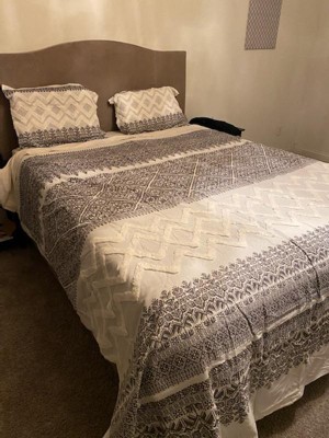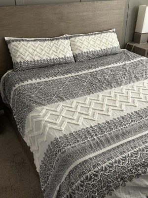 - Farmhouse cotton duvet cover set with tufted white chevron chenille