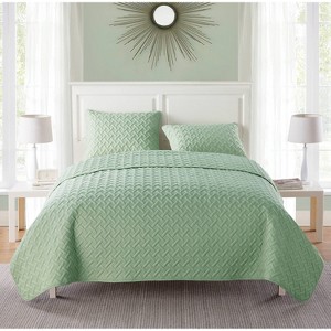 Add soft texture and unique dimension to your bedroom décor with the VCNY Home Nina Embossed Basketweave Quilt Set, which features an embossed basketweave pattern in your choice of a variety of solid colors. Lightweight, durable, and irresistibly soft, this solid bed set is made of 100% microfiber fabric and is machine washable. Each quilt set includes a quilt and shams for a coordinated look.