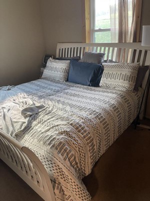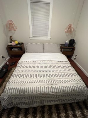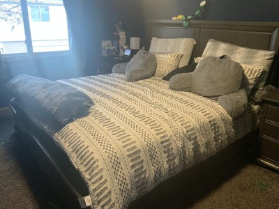[This review was collected as part of a promotion.] This mini set is really pretty. It comes in ivory with charcoal stitching. And I love that it's a neutral color. The design is not loud but it stands out in a good way. I also love that it's cotton, it's nice to the touch. The comforter is not very thick. But more of a thicker quilt. And I did go with a king size since I have 12 inch mattress on top of a box spring with a metal frame.