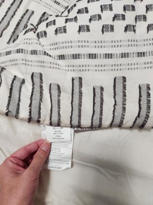 Give your bedroom a comfortable farmhouse look with Rhea Cotton Jacquard Comforter Mini Set. The grey cotton comforter features horizontal stripes, in black hues, with eyelash-looking woven details that add a charming accent to the top of the bed. Hidden bartacks create a clean, duvet-like finish on the comforter, while matching shams mimic the design seen on top of the bed completing the cotton jacquard bedding set. Made from 100% cotton, this jacquard comforter set is machine washable for easy care and provides a causal allure for your bedroom decor. This bedding set is also OEKO-TEX certified, meaning it does not contain any harmful substances or chemicals, ensuring quality comfort and wellness. Items in the set may come in a rolled or compressed packaging, which will need to be fluffed up or steam ironed before use to remove wrinkles.