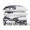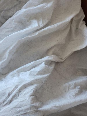 [This review was collected as part of a promotion.] Upon receiving this beautiful bedding set, I was filled with hope for its quality and aesthetic pleasure. However, after the first wash, my hopes were dashed. The white fabric was covered in lint from the black pattern, and my attempts to remove it were unsuccessful. Unfortunately, despite my efforts, I cannot love this set. I am disappointed and unsure what to do with it. It would have been wonderful if it matched the image in the photo, but sadly, it does not.