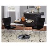 This 3 piece Pisa dining set from Buylateral adds an instant update to your dining area or kitchen. This table features a Laminated MDF tabletop along with Chrome plated legs, giving it a modern style. Chairs are made from Bentwood with chrome plated legs as well. This set is available in a variety of colors. Great for small space living. Maximum chair weight is 200 pounds. The products for household use only.