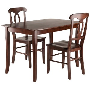 3pc Inglewood Dining Table with 2 Key Hole Back Chairs Walnut - Winsome: Modern Farmhouse Style, Wood Frame, Tapered Legs - 1 of 3