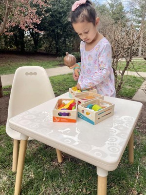 [This review was collected as part of a promotion.] I have been needing a table for my daughter. She likes to put her dolls and toys in the table. It is so sturdy, the paint is nice and high quality. I love that it’s not so heavy, so it’s easy for her to move to desired area if needed. It’s very modern so it fits with the furniture I have now.