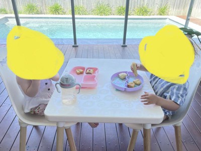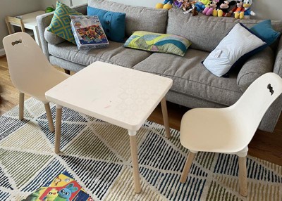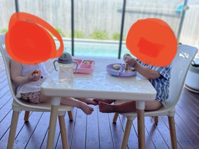 I love everything about this set! My little ones (ages 7 and 4) love to craft, as well as have their snack at this table. It's easy to assemble, easy to keep clean (hello magic eraser!), and very comfortable (straight from my little critics)! A must buy!