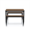 Add a minimalist allure to your dining area with this dining room set featuring rectangular table and two benches that evoke a clean, industrial-adjacent look and feel. A transitional style with clean, crisp lines pairs well with the two-tone finish of each piece. Sleek black metal legs and wood grain details add an industrial touch with rustic flair to this handsome three-piece set.