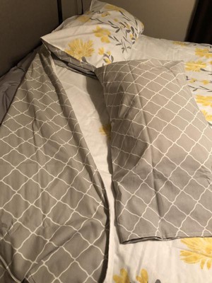 [This review was collected as part of a promotion.] This was a very pretty duvet set. The yellow and gray went perfect together. The flowers were very pretty. My only complaint was that my current king size comforter was bigger than this king size duvet so it was bulky on the end where it gathered up. I also liked that you could make it reversible.