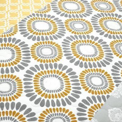 Note: The fabric on this bedding set is cut randomly after printing, so the order of stripes from top to bottom on the shams and the front of the quilt may be different than what is pictured.