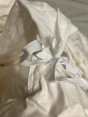 [This review was collected as part of a promotion.] Very elegant. Love the off white color, it looks so classy, It fit my queen size bed well. The button opening made it easy to apply to the down comforter. It washed well and is comfortable!