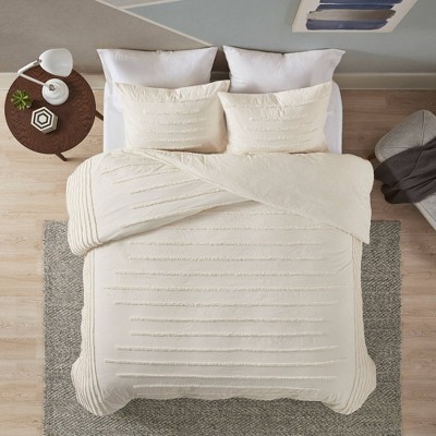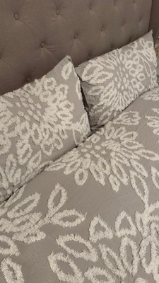 3pc King/California King Danica Tufted Cotton Chenille Floral Duvet Cover Set Off-White - Madison Park: Midweight Fabric, Button Closure