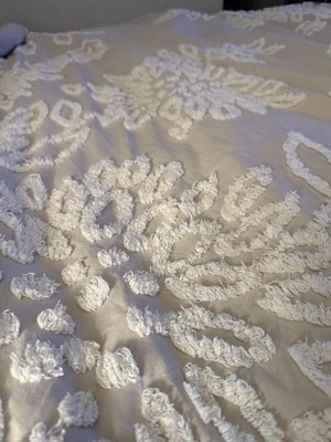 [This review was collected as part of a promotion.] This Veronica 3 Peice Tufted Cotton Chenille Foral Duvet cover set is so beautiful and I love that it is cotton and chenelle, the material is very soft. It's a nice crisp white and looks of high quality with a raised embellished flower pattern. I really like that you can add any pop of color. The set has two pillow shames with the same beautiful pattern. I would definitely recommend this duvet set. I absolutely love it.