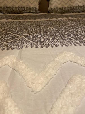 - Farmhouse cotton duvet cover set with tufted white chevron chenille