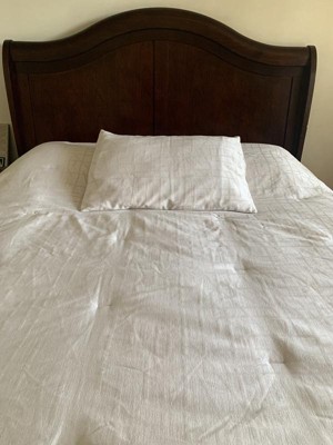 This Threshold Luxe comforter set in off white is really nice. The jacquard print is really pretty and it has this beautiful sheen as well. It’s the perfect thickness and seems to be very well made. It will be perfect for winters in the Midwest. know I got the full/queen size but it’s definitely queen sized! The only annoying thing was that it was very wrinkled and I had to spend quite some time ironing to get it to look like in the photo. Overall though a beautiful comforter that I will enjoy for years to come!