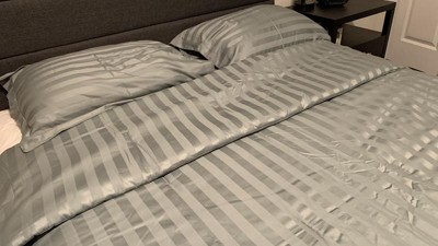 Oh Wow! This is beautiful. I love the soft teal color. It is actually part of my color pallet in my home and works perfectly. The material has a gorgeous satin sheen and the stripes add elegance. And I love how you make the pillow sham covers easy to work with. As you can see, my cat loves it too. 5 tbumbs up!