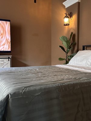The Luxe Striped Damask Comforter and Sham Set is what your body has been longing for. In using this comforter it felt like I was giving myself a much needed relaxing and restful hug. Although not stated, I feel as though my quality of sleep has improved overtime by using this comforter and sham set. It’s comfy, plush and vibrant in its green hues. The design is playful yet chic. It’s of ample size and the colors really make your bed stand out in a given room. Something regarding the cotton backing and sewing detail is done really well. This 300 thread count comforter is what your room needs to that touch of style and warmth to your environment. Machine washable, and be sure to tumble dry it. Easy to place, wash and use! Are you ready for something colorful in your dwelling?