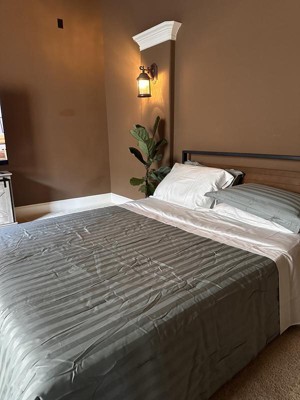The Luxe Striped Damask Comforter and Sham Set is what your body has been longing for. In using this comforter it felt like I was giving myself a much needed relaxing and restful hug. Although not stated, I feel as though my quality of sleep has improved overtime by using this comforter and sham set. It’s comfy, plush and vibrant in its green hues. The design is playful yet chic. It’s of ample size and the colors really make your bed stand out in a given room. Something regarding the cotton backing and sewing detail is done really well. This 300 thread count comforter is what your room needs to that touch of style and warmth to your environment. Machine washable, and be sure to tumble dry it. Easy to place, wash and use! Are you ready for something colorful in your dwelling?