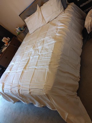 I wanted so badly to love this bedding set. It was a wonderful full cream color and the material was nice and thick. The ties on the inside of the duvet were really sturdy and easy to use. There was a zipper on the side that also made it really easy to put onto the comforter. The pillow cases fit well on our standard pillows. The only hold up was that the material of the Lyocell Cotton Blend Duvet and Sham Set was that it was EXTREMELY uncomfortable. We slept with it on one night and it was so scratchy and itchy. It felt like a light sandpaper. I tried washing it with detergent and fabric softener. It did not help in the slightest. I don't know what it is about the blend of the cotton, but it didn't work, at all! Overall, I would definitely not recommend this bedding set.