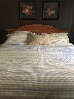 [This review was collected as part of a promotion.] The solange stripe pick stitch lanthanides yarn dyed cotton woven-qt/cv-yellow/ gray-3pc-k is a really nice well made product. Nice stitching , easy to put on pillow covers. And nice colors. The king fits perfectly, and looks great. It adds a nice amount of warmth, without all the weight, it’s just a really great product.