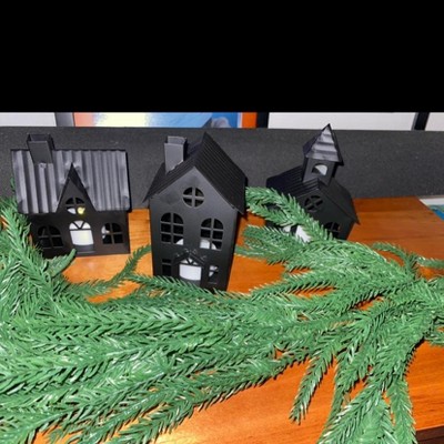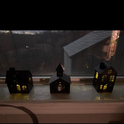 3pc Lit Metal House Decorative Christmas Figurine Set - Wondershop™ Black: Tabletop Indoor Decor, Battery-Powered