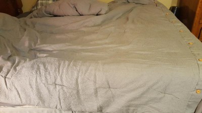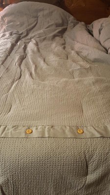 [This review was collected as part of a promotion.] I was somewhat underwhelmed by this product. It definitely looks better in the product image than when it came out of the packaging. I think I was expecting it to be a more firm texture, but it is very soft and therefore is VERY wrinkly. But overall I don’t mind the soft texture that much. The comforter itself has this small waffle texture to it which adds a nice visual touch. It isn’t too heavy, so I assume this would be a good option for the warmer months too.