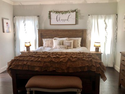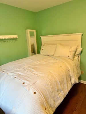 So as it turns out, I am extremely picky when it comes to finding the perfect comforter. It took me a solid week of looking and reading reviews and going back and reading them again. I finally decided this was the one I needed and it did not disappoint! First off I love how warm it is. We like to keep our house around 68-69 degrees and this comforter is perfect for cuddling under at night. Secondly the button details are the cutest. My husband did give me a hard time about buttons on the pillows, but I said just turn it over goof. The waffle weave makes it unique but classic. I would highly recommend it. I included a pic on our bed, but you can’t see the button detail towards the bottom because of my ruffles haha