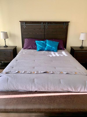 [This review was collected as part of a promotion.] I received this Finley 3 Piece Cotton Waffle Weave comforter Set a few weeks ago and I wanted to wait till I finished my diy rustic theme headboard but I couldn't wait. I love this set. I went with the gray set because I'm doing a rustic gray white wash theme and this was perfect for the theme. I was a little hesitant with this set at first but something about the buttons on it told me to go for it. The set includes a comforter and 2 shams. I am a bed skirt person so I just bought a plain grayish silver and it went perfect with it. I have had my previous comforter for over 8 years and nothing compared to it until I tried this one. The previous one is microsuede and thick but heavy for winter and light enough for summer. This Finley set is also the same. It is made of microfiber cotton and it's so soft. The weave texture is not a rough feel either which is a bonus for me because I don't care for weird textures. The stitching is of great quality as well and the fabric is a good quality. The set looks plain in the detail picture but with the buttons and weave texture it looks amazing after being put together on the bed. It is a perfect contemporary set and when matched woth a rustic theme it looks so fancy and adorable. Can be used by a female or male and it comes in several colors. I am so glad I decided on this set and I am highly recommending it. The pictures below are just a rough idea and close up of the set.