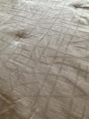 • A: The comforter features an elegant tonal geometric pattern on a solid color.