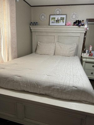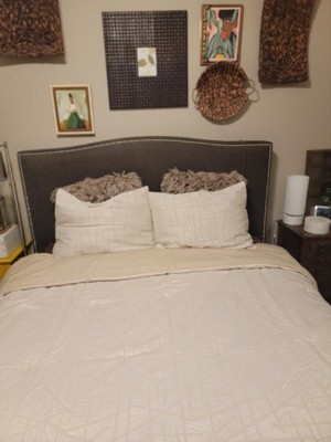 This Threshold Luxe comforter set in off white is really nice. The jacquard print is really pretty and it has this beautiful sheen as well. It’s the perfect thickness and seems to be very well made. It will be perfect for winters in the Midwest. know I got the full/queen size but it’s definitely queen sized! The only annoying thing was that it was very wrinkled and I had to spend quite some time ironing to get it to look like in the photo. Overall though a beautiful comforter that I will enjoy for years to come!