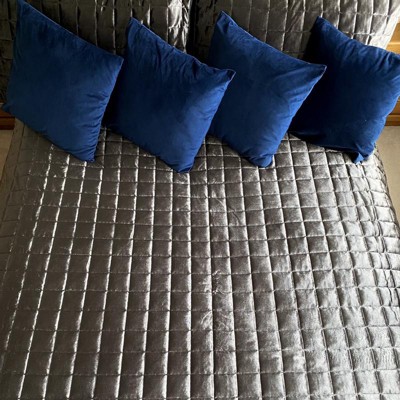 The Lyndon 3 peice coverlets from Riverbrook Home are the perfect combination of contemporary style and old world luxury. Shimmer velvet makes a dramatic statement with this simple essential combination of coverlet and shams. The simple geometric stitch pattern creates a cool symmetry making this a perfect choice from modern to traditional. Keep you bed simple or doll it up and make it your own. Machine washable.