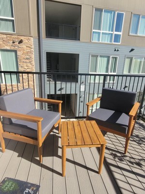 3pc Magnolia Patio Acacia Wood 2 Seater Chat Set - Teak/Dark Gray - Christopher Knight Home: Outdoor Conversation Furniture with Cushions