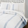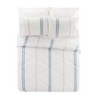 Classic blue and tan stripes get a modern update with a large scale layout. The yarn-dyed 100% cotton construction of the Laurel & Mayfair Mason comforter set means that your bedding will look great after regular use and washing. Diamond pattern quilting and polyester fill keep things light and cozy. Three piece set includes comforter and two pillow shams.